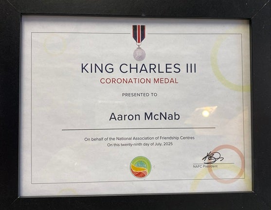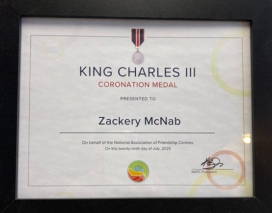 2025 King Charles III Coronation Medals To Zackery & Aaron McNab 2020-21 Service Award Covid 19 2029 Friendship Centre of Excellence 2014 Friendship Centre of Excellence 2014 Youth Centre Award 2013 Certificate Of Excellence
